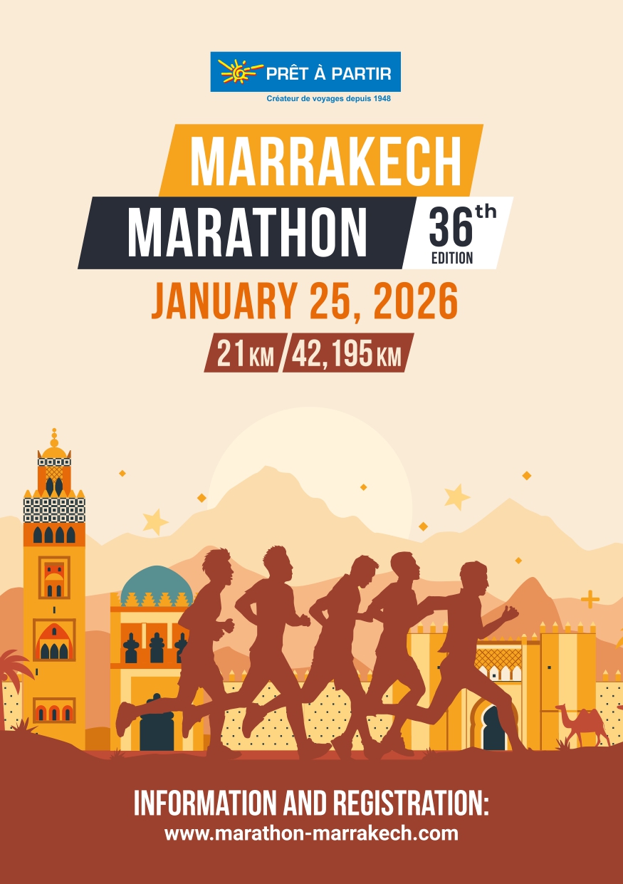 Odbiór pakietów w wiosce biegaczy znajdującej się na Place du 16 Novembre, Gueliz w godzinach od 10:00 do 18:00.