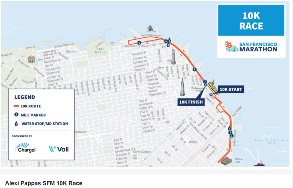 START: The Embarcadero at Market StreetFINISH: Embarcadero at Washington (trasa i godzina startu mogą ulec zmianie)